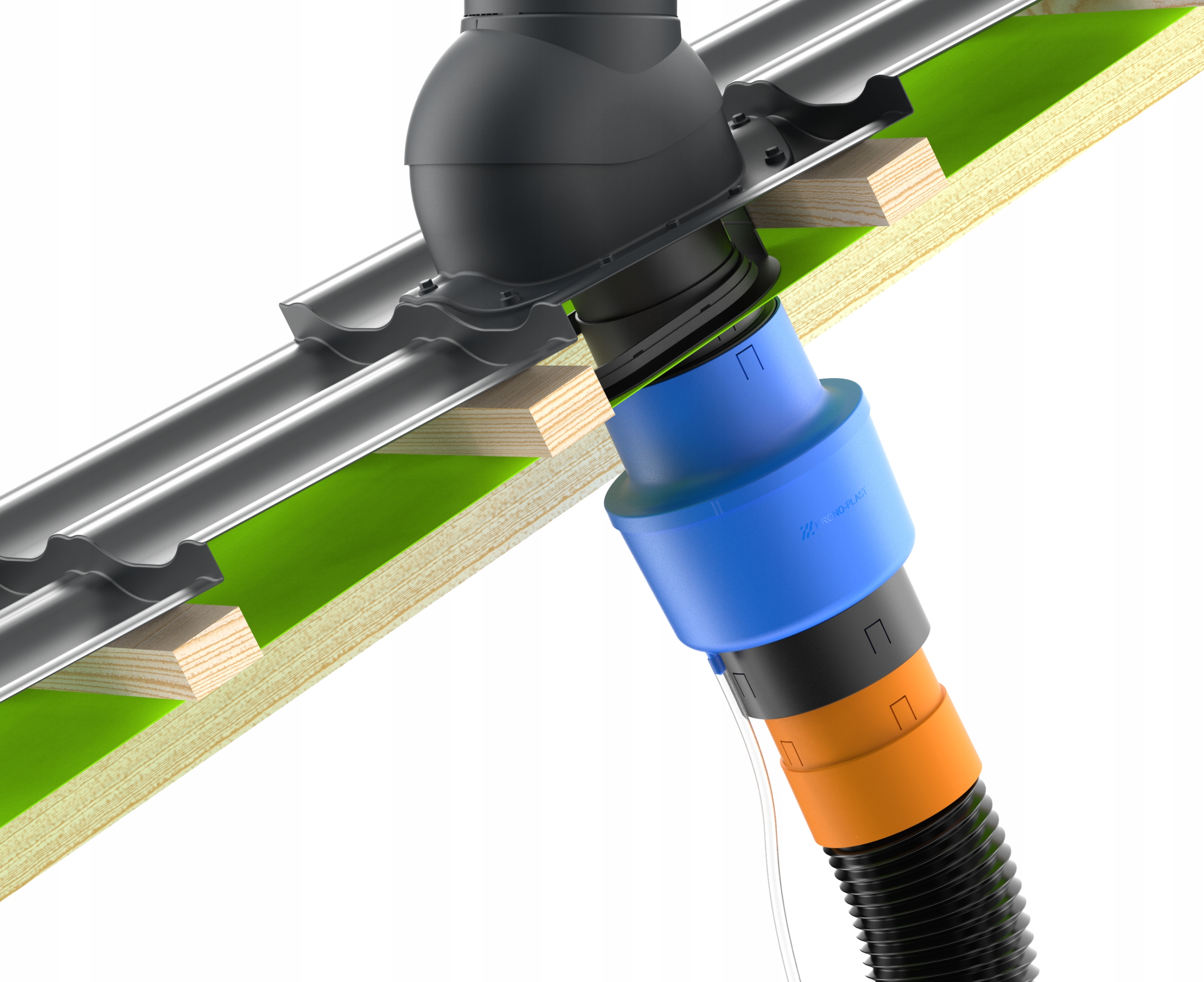 Конденсатосборник SKR-2 (Ø150мм) подключается непосредственно к выходной трубе вентиляционного выхода. Крепление к трубе на защелках "Click". Служит для сбора конденсата и в дальнейшем его естественн